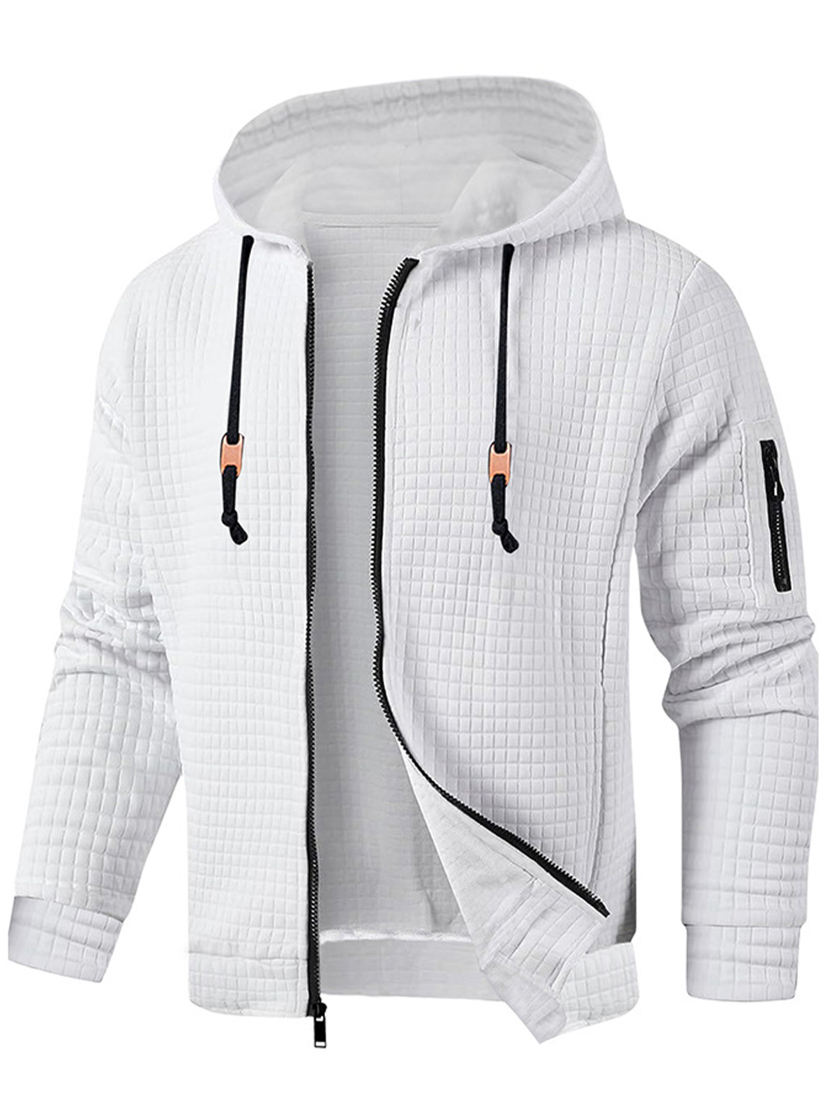 Men's Casual Solid Waffle Zip-up Long Sleeved Jacket