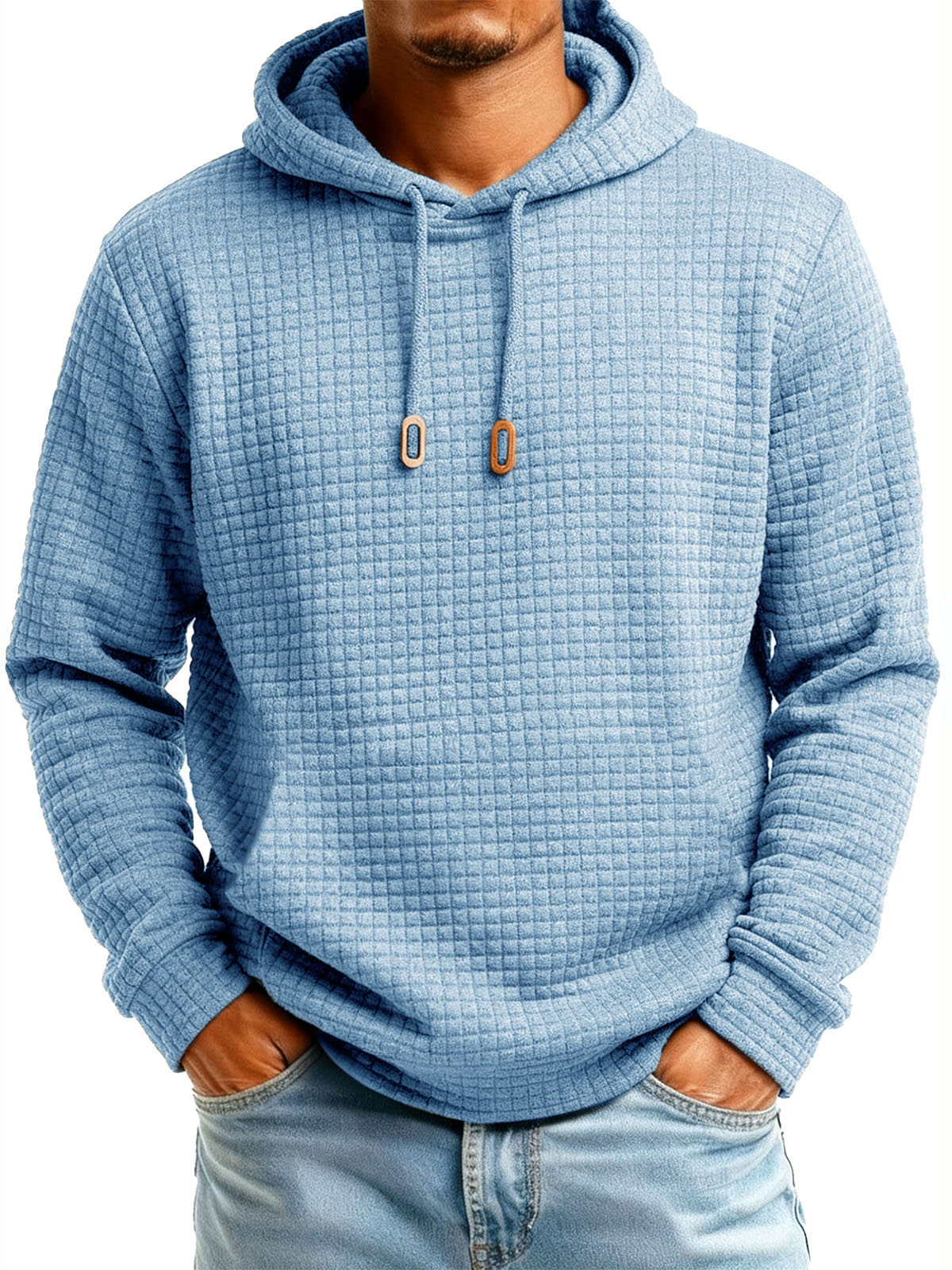 Men's Casual Solid Color Waffle Long Sleeve Hooded Coat