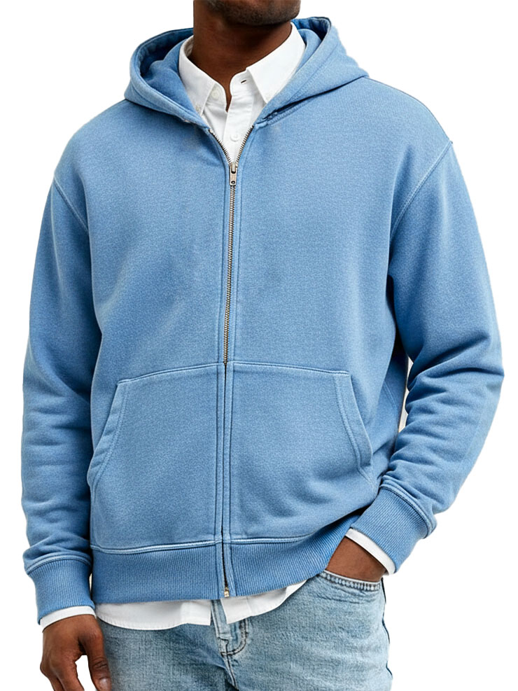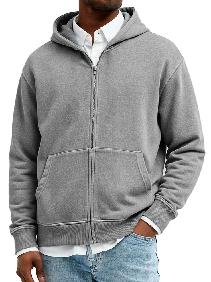 Men's Simple Retro Solid Color Zipper Sweatshirt Jacket