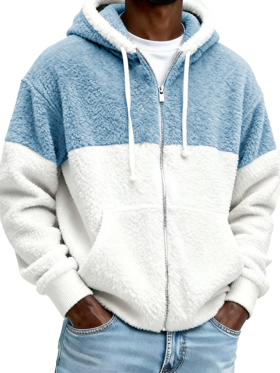 Men's Stylish Casual Patchwork Plush Warm Long-sleeved Hooded Jacket