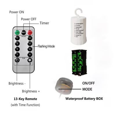 These Hanging starburst lights are made with a smooth copper metal head, high-quality flexible copper wire, waterproof LED bulbs, and a waterproof battery box. These lights are quality, convenient, and durable.