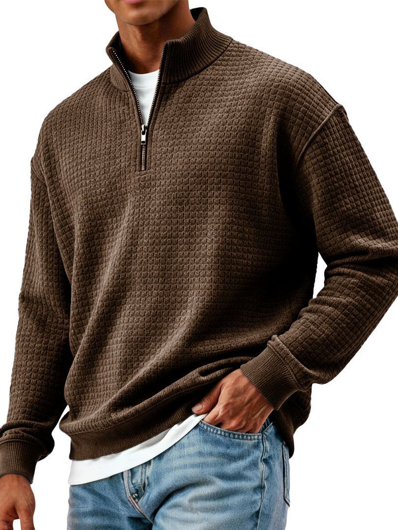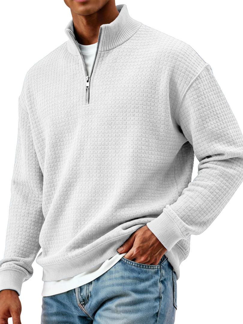 Men's Clothing Fashionable Casual Small Checkered Fabric Standing Collar Long-sleeved Hoodie