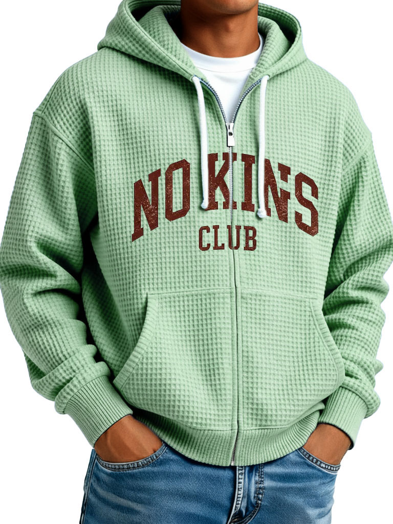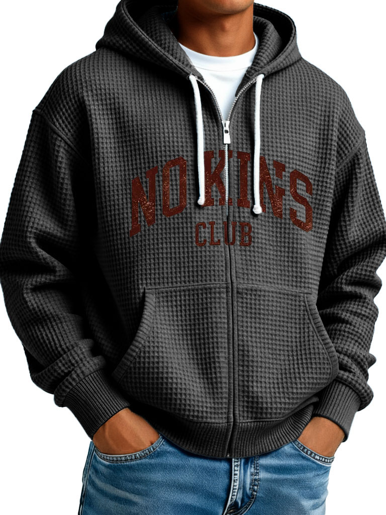 "no Kings" Letter-printed Waffle Fabric Pockets Long-sleeved Hoodie
