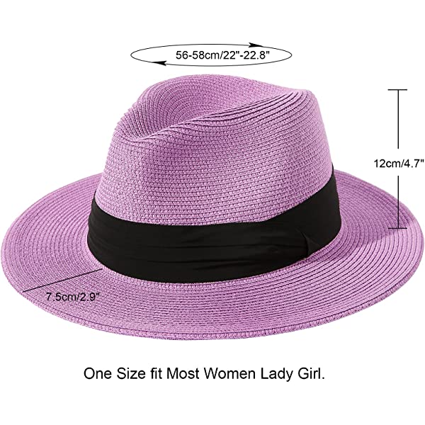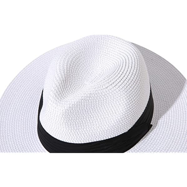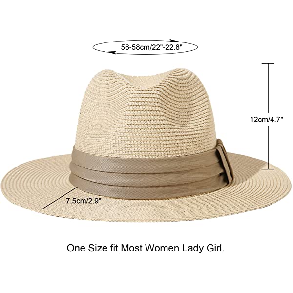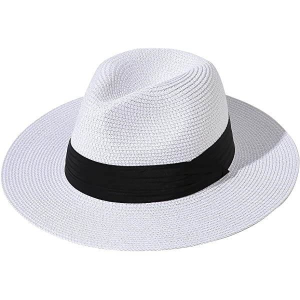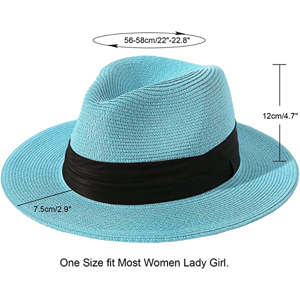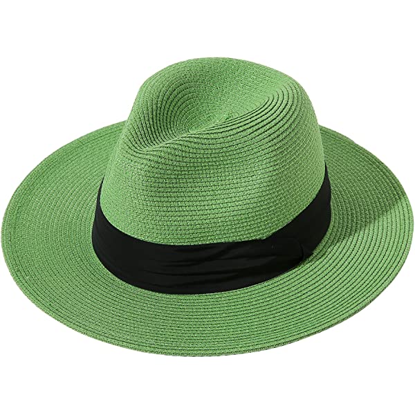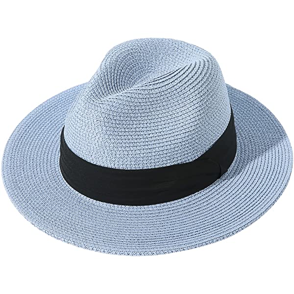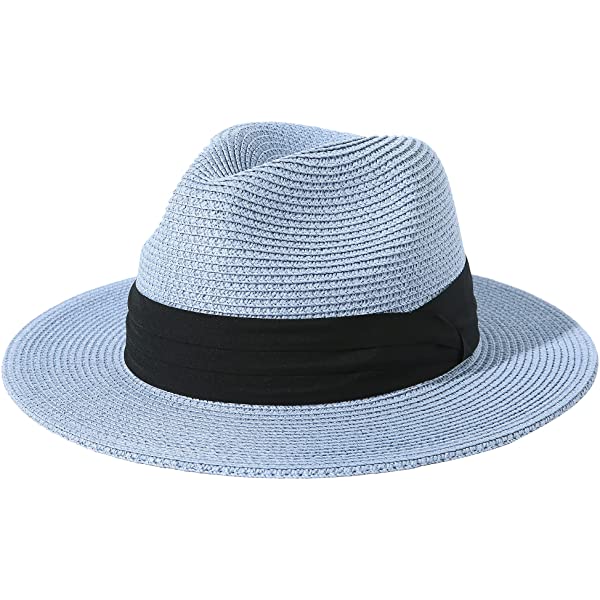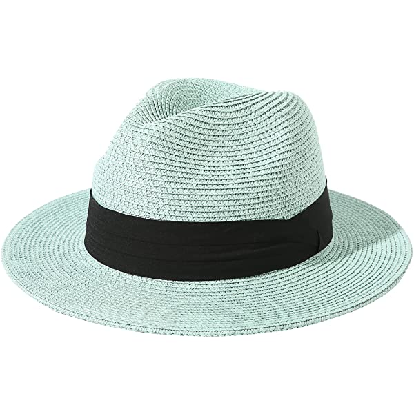 Wide Brim Straw Panama Roll up Hat Belt Buckle Fedora Beach Sun Hat