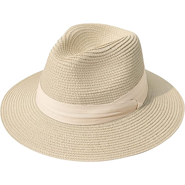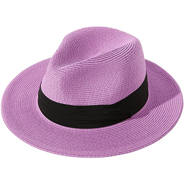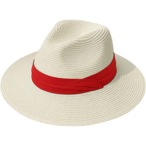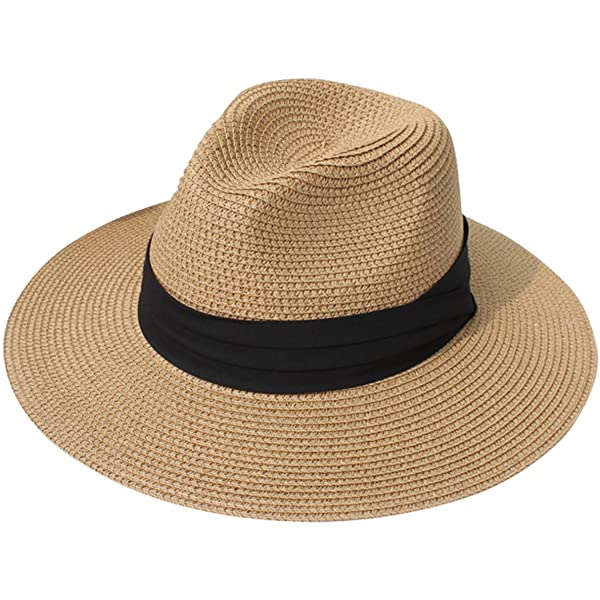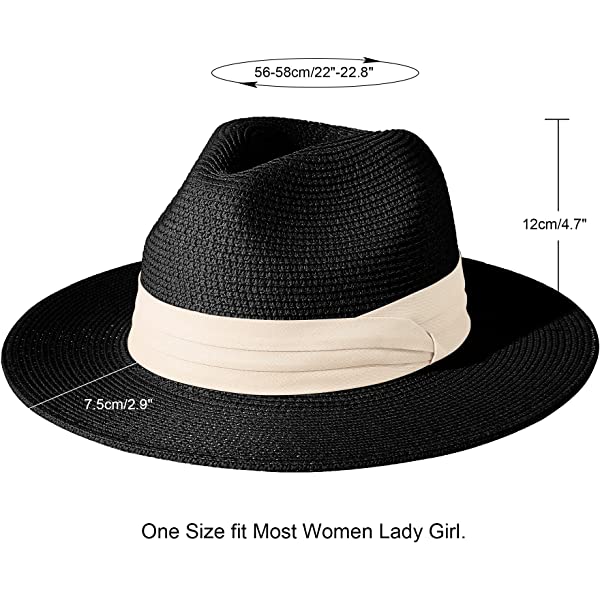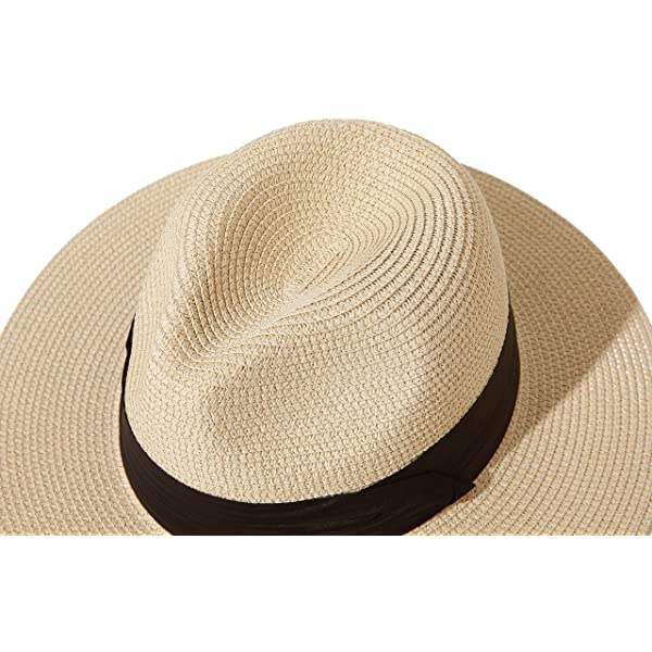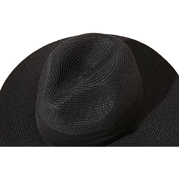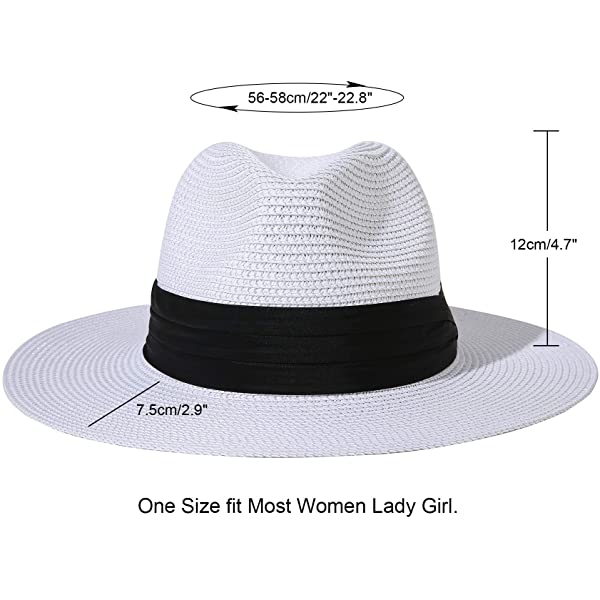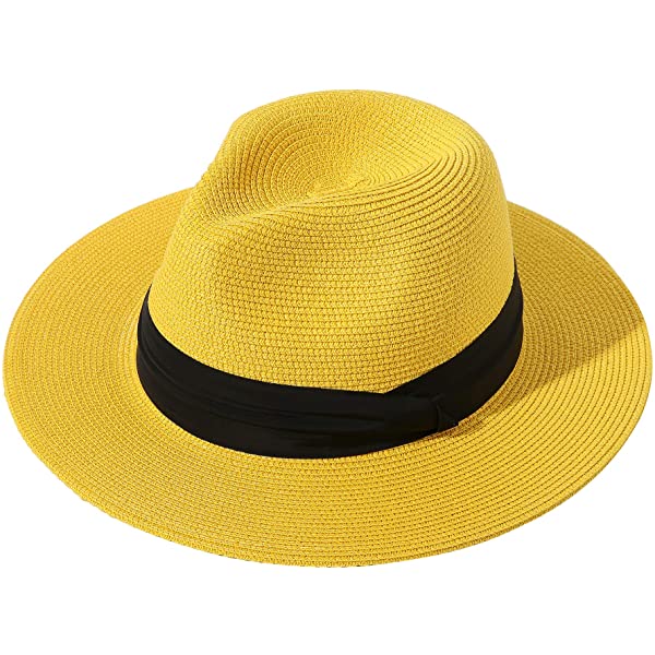 Wide Brim Straw Panama Roll up Hat Belt Buckle Fedora Beach Sun Hat