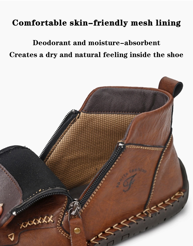 The zipper on these boots makes them extremely easy to put on and take off. No more struggling with laces or buckles. Simply zip up and you're ready to go. This convenient feature is especially useful when you're in a hurry.