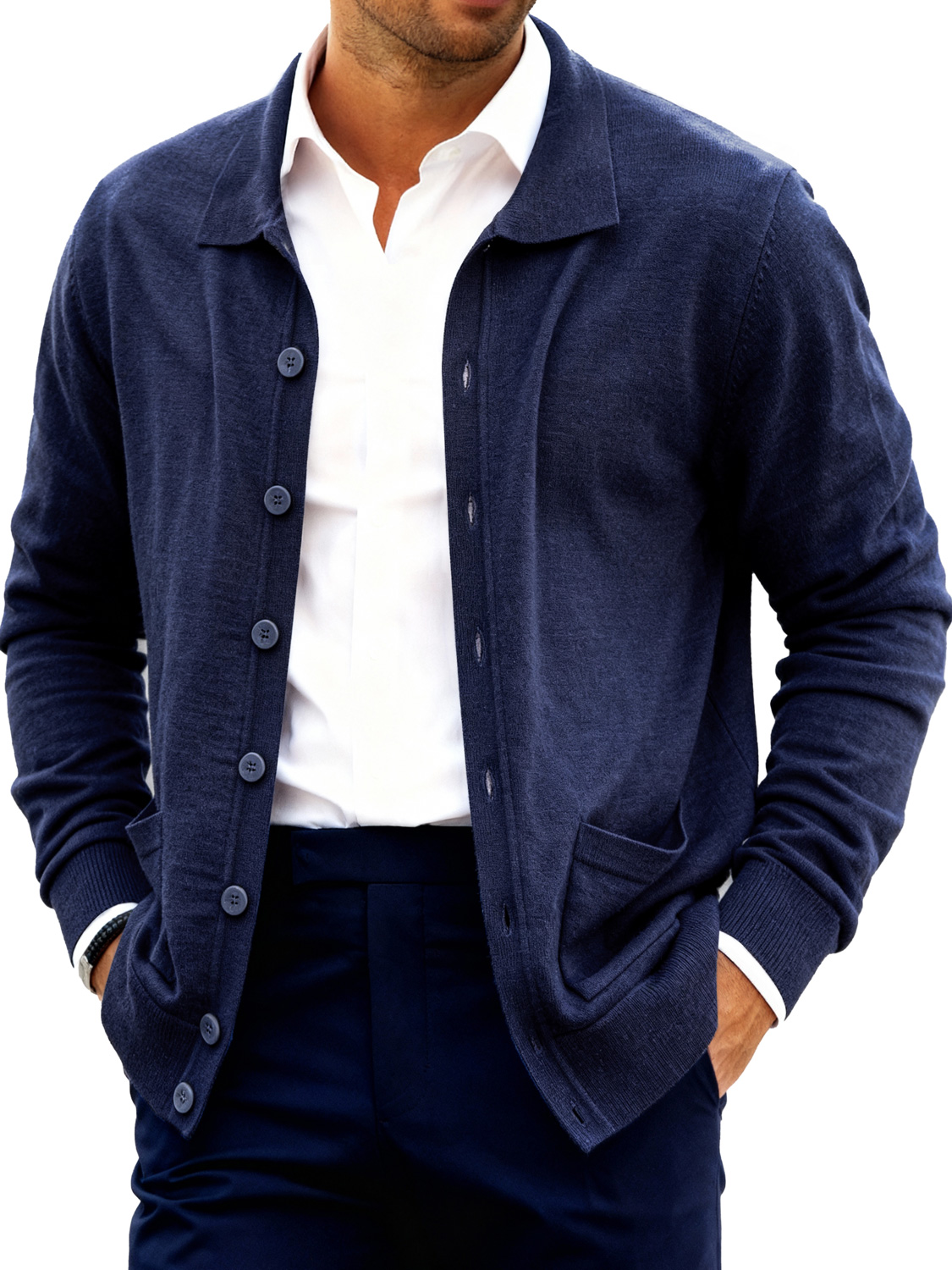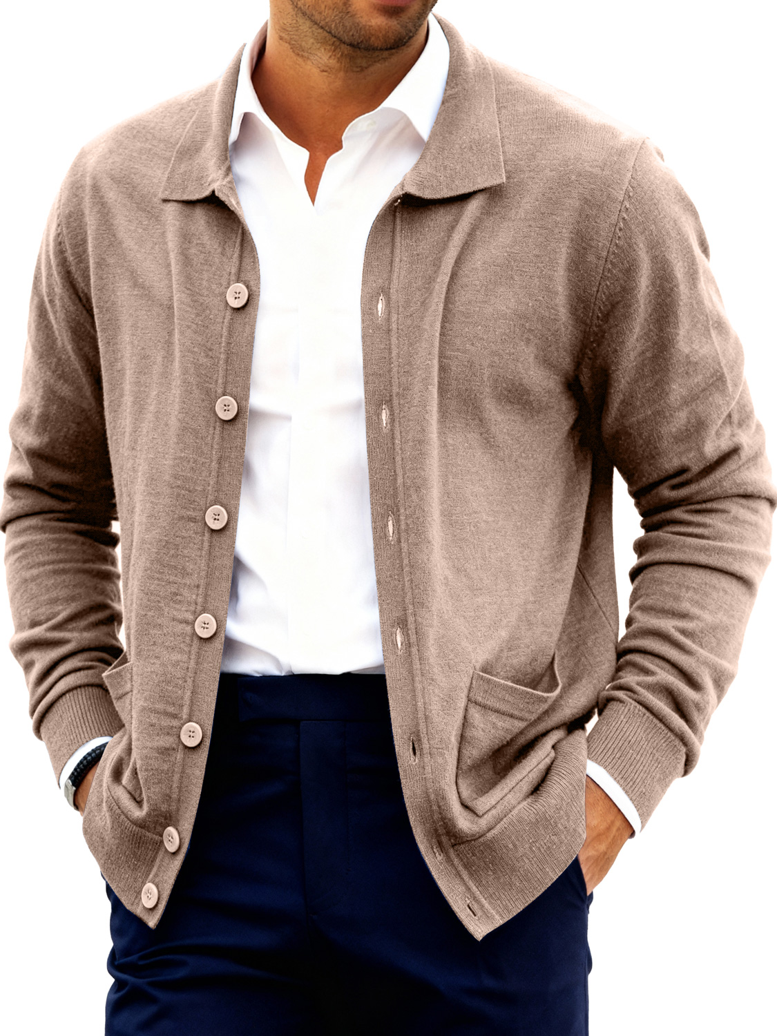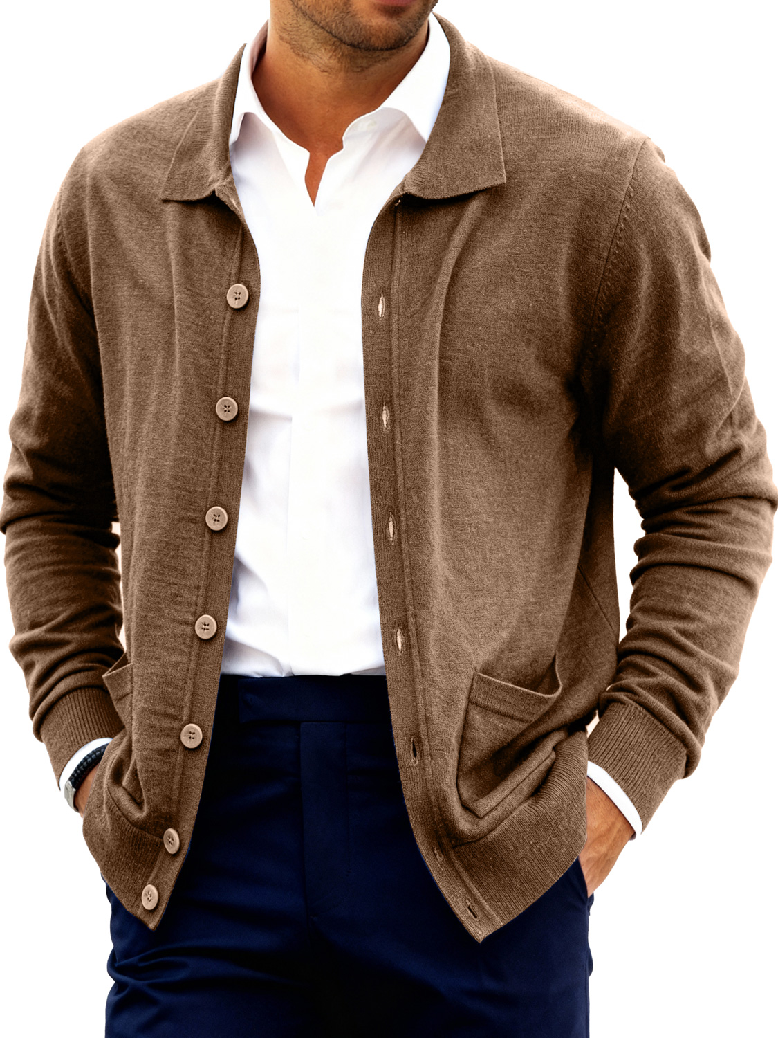 Men's Fashion Lapel Button Double Pocket Sweater Jacket