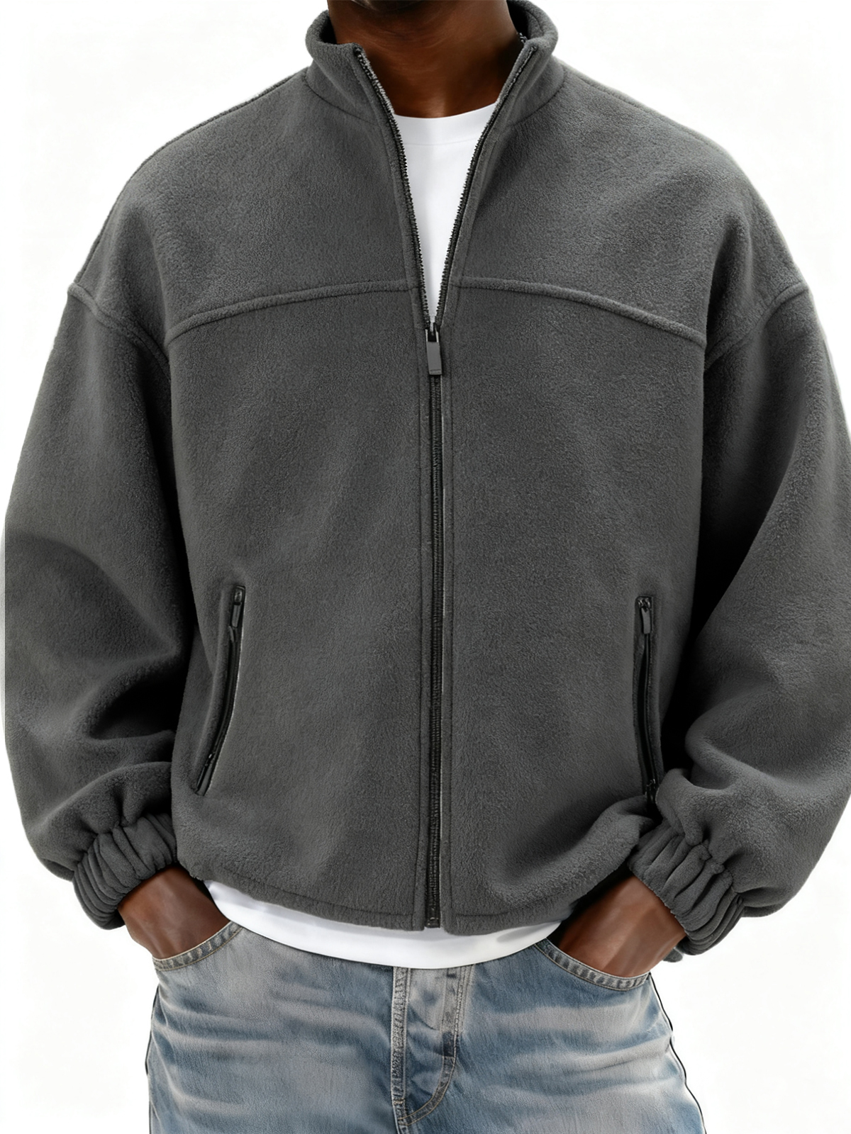 Men's Fleece Full Zip Stand Collar Jacket with Side Pockets