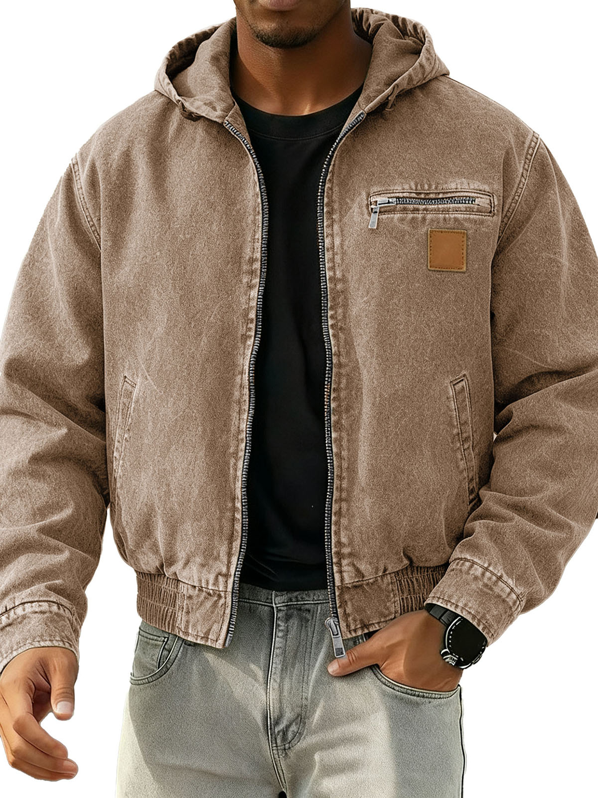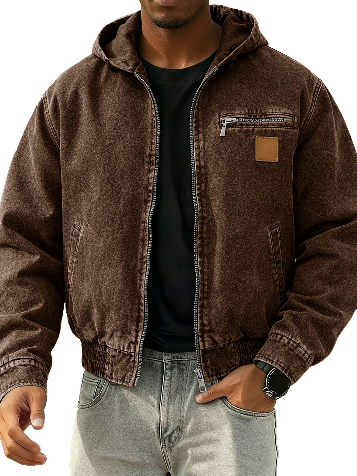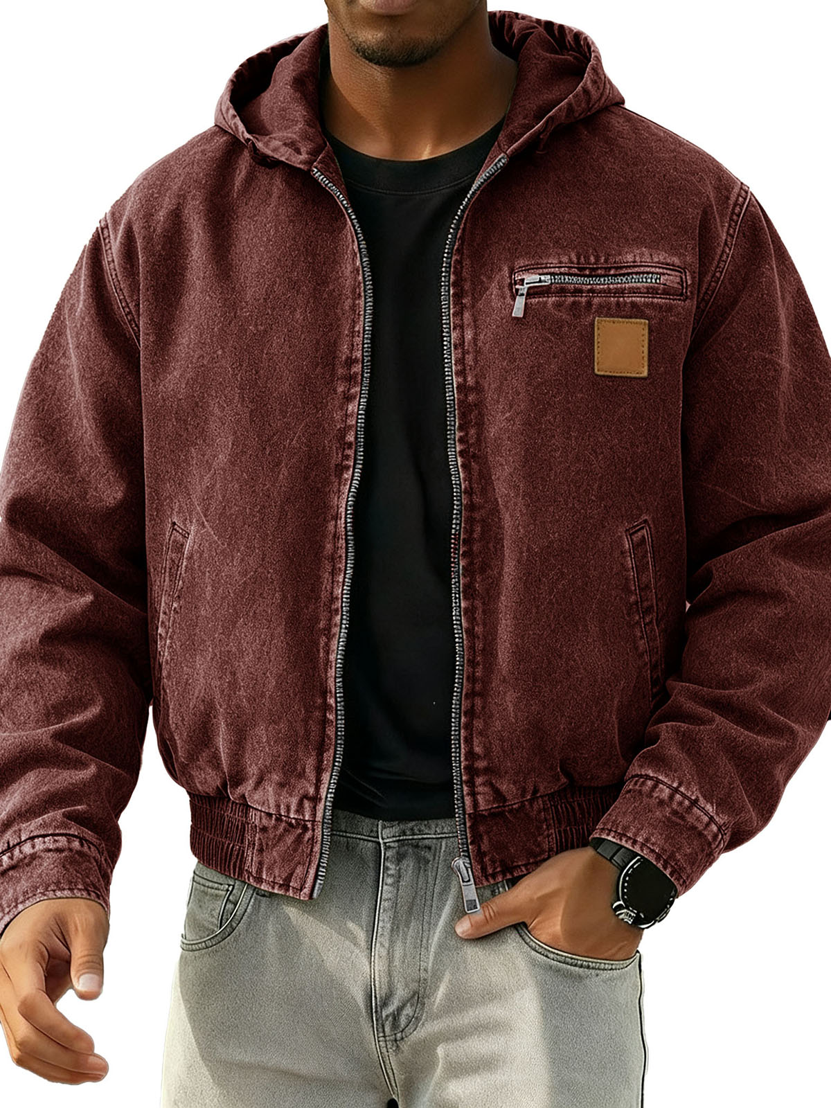 Men's Stylish Retro Long-sleeved Hooded Motorcycle Jacket