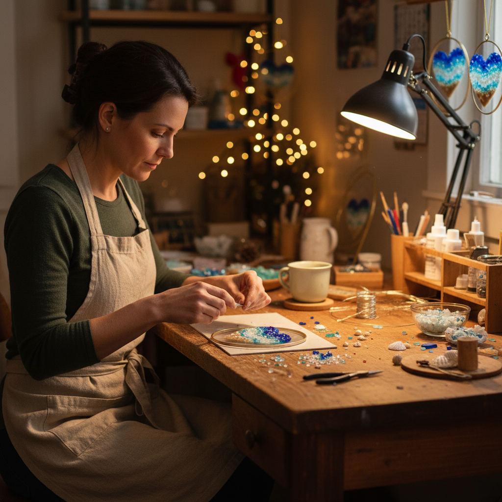 💙🌊 Sea Glass Heart Ornament – Handmade Coastal Christmas Decoration