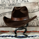 It has a low profile Gus creased crown that is 4.75” in the back and slopes to 4.25” in the front. The 3.75” brim has a small pencil curl on the sides and a nice slope in the front and back. This black hat is topped off with an antique looking leather hat band. We really like this one with its unique look and versatility.